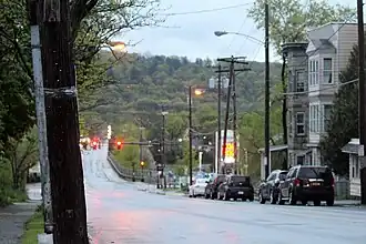 ![]() A view of the 112th Bridge in the Albany County city of Cohoes, New York. The structure, renovated in the late 1990s, connects Van Schaick Island to the Lansingburgh neighborhood of Troy, New York. | |