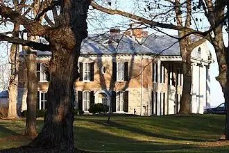 The original stone house has been extensively altered, with brick Victorian-era alterations exchanged for the present Colonial Revival style with a tetrastyle Ionic portico.[2] The second story was added in the late 19th century, and all windows were converted to an arched pattern. In the early 20th century the Ionic portico was added by architect Stuart H. Edmonds.[3]