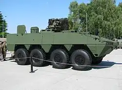 In 1985, the company moved its axle production from Helsinki to a new factory at Hämeenlinna.[66] In 1995, axle production was separated into an independent unit called Sisu Axles; this was sold to investors in 1999.[67] The main factory builds military vehicles; the state separated it from the parent company in 1996 and renamed it Patria Vehicles Oy.[68] Its main products are Patria AMV armoured personnel carriers.[69]