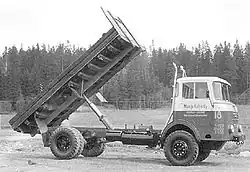 A typical feature in Vanajas was over-engineered structures which were robust rather than optimised.[19] The main components were sourced from well-established suppliers.[31] VAT also showed progressive thinking in driver ergonomics; the comfortably sprung and hydraulically damped driver's seat was positioned close to the door, to ease reversing.[32] The seat had several ways in which it could be adjusted. Hanging pedals, which were set to the same level, became standard at an early stage.[33] Vanaja's interior heater, which produced 9,000 kcal/h, was possibly the most efficient available in lorries by the 1960s. Many Vanaja drivers valued the particularly soft suspension of the vehicles.[32] Two-axle lorries were available in 4×2 and 4×4 layouts; the three-axle models were produced as 6×2, 6×4, 4×4+2 and 6×6.[34]