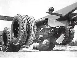 The best-known hallmark of Vanaja, the full-load lifting tandem axle, was introduced in January 1957. This invention enabled an additional load of 2.5 tonnes to be carried and the entire load on the tandem could be moved to the fore axle using an electro-hydraulic system. The system improved the traction, offering a significant advantage on slippery surfaces.[22] The innovative lifting tandem was developed under leadership of the company's chief engineer Veikko Muronen. Vanaja became the leader in the Finnish logging vehicle market and maintained this position until production ceased.[23] In forestry work, a layout with a driven front axle and a tandem axle with a driven fore axle, called 4×4+2, became famous in Finland but is seldom seen outside the Nordic countries.[22]