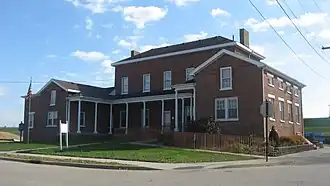 Vance-Tousey House is a historic home located at Lawrenceburg, Dearborn County, Indiana. It was built about 1818, and is a two-story, five-bay, Late Georgian / Federal style brick and sandstone dwelling with a low hipped roof. The main block is flanked by 1+1⁄2-story wings. Flanking the main entrance are fluted Doric order engaged columns above which is a Palladian window. It was built by Samuel C. Vance, founder of the town of Lawrenceburg. It houses the Dearborn County Historical Society.[2]: 5