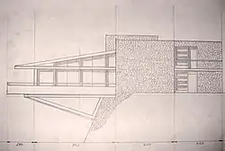 The Vandamm House is a setting in the Hitchcock movie North by Northwest. Its modern architecture was inspired by the real house Fallingwater designed by Frank Lloyd Wright. In the movie, the Vandamm House is located near Mount Rushmore, but only existed as a set constructed in an MGM studio in Culver City by Robert F. Boyle, with distant exterior shots made using a matte painting.[1][2]