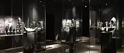 During the third phase at Vani (c. 350–250 BC),[11] Changes in the material culture are prominent. The principal sanctuary on the hilltop had been destroyed and burnt and the ritual ditches had ceased to function; new stone buildings appear including a circuit wall. In addition, traditional Colchis pottery gives way to new forms, notably pear-shaped jugs with red paint on a light ground, familiar in eastern Georgia, anciently known as Iberia, and Greek influence becomes more prominent on the goldwork. Burial in storage-jars becomes the predominant mode.[12] An important find is a 4th-century BC signet-ring bearing, in Greek letters, the name of "Dedatos",[13] probably a local ruler.[14] Lordkipanidze assumes some of these changes may reflect the infiltration of tribes from Iberia, which at that time experienced urbanization, state formation, and expansion.[15][13]
