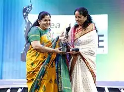 Vani is the youngest artist to be awarded the "Sangeet Peet Samman". She won the National Film Awards for Best Female Playback Singer three times and also has won State Government awards from the states of Odisha, Andhra Pradesh, Tamil Nadu and Gujarat.[9] In 2012, she was honored with the Filmfare Lifetime Achievement Award – South for her achievements in South Indian film music.[11] In July 2017 she was honored with the Best Female Singer at the NAFA 2017 event at New York City.[12]