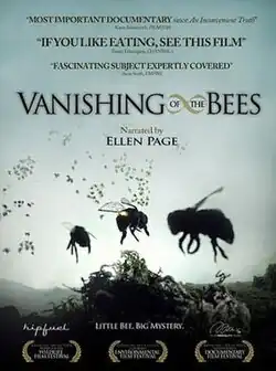 Vanishing of the Bees is a 2006 documentary film by Hive Mentality Films & Hipfuel Films, directed by George Langworthy and Maryam Henein and released in the United Kingdom in October 2009. The story is centered on the sudden disappearance of honey bees from beehives around the world, caused by the poorly understood phenomenon known as colony collapse disorder or CCD. Although the film does not draw any firm scientific conclusions as to the precise cause or causes of CCD, it does suggest a link between neonicotinoid pesticides and CCD.[2][3]