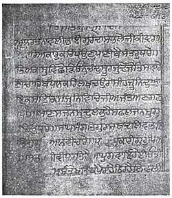 The first widely accepted and available extant Sikh writings were put-down to writing in the 1570's, namely being the two extant recensions (out of four originally) of the Goindwal Pothis and the Puratan Janamsakhi.[4]: 7–8 Later, the MS 1245 was written in around 1600, with the Adi Granth being finished and installed in 1604 in the form of the Kartarpur Pothi.[4]: 7–8 Bhai Gurdas is claimed to have been the amanuensis of the original Kartarpur Pothi, which itself would be copied multiple times in the early 17th century.[4]: 7–8