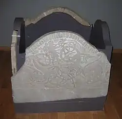 - ^ Runor G 220, section Inscription, Rune reading: "… …tkaiʀ : aʀ : to i : hulmka-… …iþ(i) : -…"