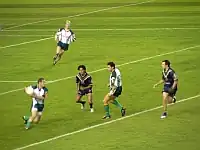 A hybrid of rugby union and Aussie rules.