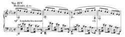 | XIV | Moderato (72 bpm) | C minor | 24 bars of 4 4 then one bar of 2 4 |