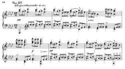 | XXI | Andante (60 bpm) - Più vivo (100 bpm) | D♭ major C major | 24 bars in D♭ major followed by 29 bars of 3 4 in C major marked Più vivo (100 bpm) |