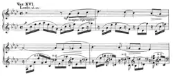 | XVI | Lento (54 bpm) | F minor | 14 bars in F minor | ![]() |