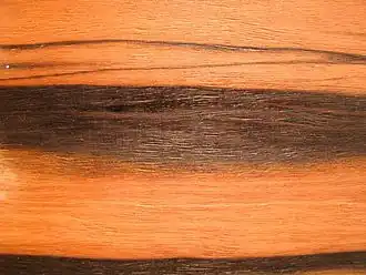 Variegated ebony is a group of valuable hardwood varieties, generally obtained from several species in the genus Diospyros, related to genuine ebony. The wood generally features a pattern of darker and lighter stripes, with the various kinds sometimes being difficult to tell apart. The wood has been used for furniture but also in carpentry, luthiery, and sculpture.