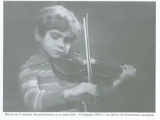 A child prodigy, as early as June 1932, at the age of six, he played in Vienna before the jury of the first international competition in violin. The six-year-old child became the sensation of the contest and was one of the youngest violinists to make his international debut in the twentieth century. By the age of nine, Abadjiev already had a secondary school diploma, and in 1936 he left for Brussels, Belgium with his parents. There, in 1937, he received the Special Prize.