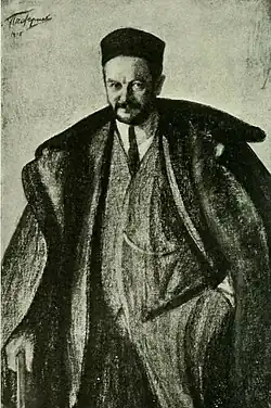In 1896, he entered the bar and became a member of the Moscow Law Society. It seems that he became the assistant of the Polish lawyer Alexander Robertovich Lednicki and collaborated with Fedor Nikiforovich Plevako (1842–1909), a distinguished attorney at law and judicial speaker.[7] Maklakov and his brother and sister Maria moved to Zubovsky Boulevard, not far from Leo Tolstoy in Khamovniki District.[8] Together, they walked or went to the baths on which Maklakov had an interesting account. At Yasnaya Polyana, outside Moscow, they discussed the fate of the Doukhobors.[9] At the novelist's urging, he defended a "Bespopovtsy" in the Kaluga Governorate accused of blasphemy; later he defended a "Tolstoyan", who was accused of storing prohibited works of Tolstoy; that case ended with an extremely lenient sentence.[10] Plevako, a real state adviser, owned a Jugendstil apartment building at Novinskiy Boulevard. Maklakov, divorced, lived there too;[11][10] they both were friendly with Anton Chekhov visiting Moscow in May 1903. Chekhov's intention to spend the summer at the Maklakov estate at Voskresensk did not materialise, but Maklakov signed Chekhov's will. Maklakov owned several hunting dogs and a dacha in Zvenigorod according to Chekhov.