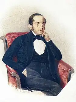 Zubkov was born in Moscow, the son of military officer Pyotr Abramovich and his second wife Natalya Petrovna Evreinova (1775-1845). Losing his father early, he grew up under the care of his mother and maternal uncle Dmitry Evereinov and a paternal uncle Ivan Bulgakov. Zubkov became a student in the architectural school at a young age and was titled as a clear in 1809 in the Moscow Kremlin Construction. He resigned in 1815 and joined Moscow Educational Institution. In 1817 he became ensign for the royal quartermaster department. He became a second lieutenant in 1819 and left service shortly after and travelled abroad. In 1821 he was in Paris where he was an admirer of the French legal system and after returning to St. Petersburg, he joined the Masonic Lodge "United Slavs" but left in 1822 as the government ordered the closure of such associations. In 1820 he became acquainted with Sergei Nikolaevich Kashkin and his cousin Prince Yevgeny Obolensky. His circle extended with Ivan Ivanovich Pushchin who belonged to the high society of Moscow. He became a member of the Collegium of Foreign Affairs in 1821. In 1825 he formed what he called a "brotherhood of the seven-pointed star" with several of his friends and this led to his being considered a member of a secret society. In 1826 he was arrested and investigated for association with the Decembrists. A testimony from Prince Obolensky led to his being released. In 1823 he married Anna Feodorovna Pushkina, daughter of Feodor Alekseevich Pushkin. On the advice of D. V. Golitsyn he became an advisor to the Moscow Chamber of the Criminal Court. In 1838 he became deputy chairman. In 1824 he became active in the Moscow Society of Agriculture and was also elected as full member of the Imperial Moscow Society of Naturalists. He became a director of the Yaroslav Demidov Lyceum in 1838. In 1845 he became chief prosecutor in the criminal department and later in the Senate. In 1855 he became a privy councilor but poor health forced him to resign. He died in Moscow and was buried in Donskoy Monastery.[1]