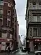 Geographically, the island consists of two main parts. The south and east of the island are old, with buildings mostly from the 19th century. The southern embankment (with its western part named after St Petersburg University located there) has some of the oldest buildings in the city dated from 18th century. That part of the island is notable for its rectangular grid of streets (originally intended to be canals, like in Amsterdam), with three lengthwise thoroughfares called prospekts – Bolshoi (Big), Sredniy (Middle) and Maly (Small) – going roughly from east to west, and with about 30 crosswise Linii (Lines)[4] forming about 15 peculiarly numbered streets going perpendicularly from south to north. The island boasts the city's narrowest street named after the artist Ilya Repin.