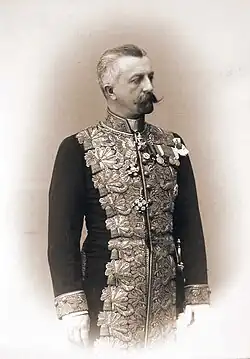 In 1870 he was assigned to the Page Corps as an external student. In 1874, he was transferred to a junior special class. On 10 August 1876, he was released from the chamber pages as a cornet to the Cavalry Regiment.[1] In 1880 he was promoted to lieutenant.