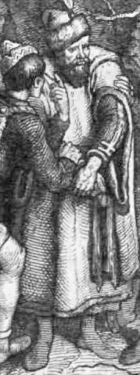 In 1046, the nobility called back Vazul's sons from the Kievan Rus' for a rebellion against Peter Orseolo, who swore to "fill this land with foreigners and give it to the Germans" according to the Illuminated Chronicle.[4] Using this opportunity, Vata started another uprising in Eastern Hungary with the purpose of Dechristianizing the kingdom. At Abaújvár, his mob met with the newly arrived brothers and demanded them to "let the whole people live according to pagan customs, let them kill the bishops and the churchmen, ruin the churches, drop the Christian faith and respect idols". Having no other choice, they had to accept it. During the chaos, Gerard of Csanád, enemy of Peter was thought to be a clergyman of him and was executed. The king tried to escape into Austria, but was blinded possibly by Vata's followers. The younger brother, Andrew was crowned king and defeated the pagan rebels who supported the older brother Levente, who didn't convert to Christianity.[1][2][5]