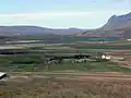 Flóðið and some mounds of the Vatnsdalshólar (left), with the steep incline of Vatnsdalsfjall in the background