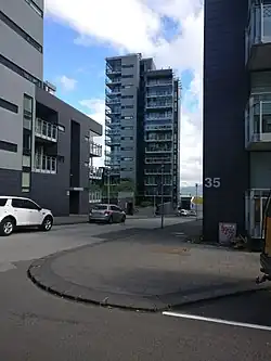 Vatnsstígur 16–18 is a residential tower located in downtown Reykjavík, Iceland. It is a part of a larger project called "shadow district" (Icelandic: Skuggahverfi) under phase 2.[1] This tower is the tallest residential tower in Reykjavík, standing 69.35 m (227.5 ft) tall.[2] Construction of phase 2 was delayed due to the financial crisis in 2008, and therefore was not completed on schedule.