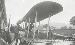 On 25 August 1912 a small biplane aircraft became the first aeroplane to land in Monmouth when it landed on Vauxhall Fields. The plane was flown from Lark Hill on Salisbury Plain, via Weymouth and was flown by Lieutenant Fox. The plane eventually left with just the pilot on board due to the boggy ground unable to take more weight. The reason for the event is unknown.[23]