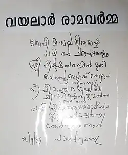 - ^ "Vayalar Ramavarma Memorial". www.alappuzhaonline.com. 4 May 2019. Retrieved 4 May 2019.