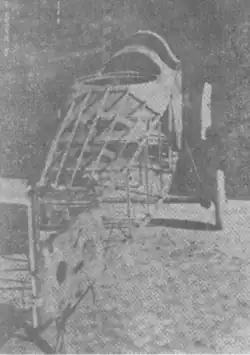 After the plane was finished, it was moved to the Seydiköy Airfield where engine and taxiing tests took place.[7] Hürkuş asked for a flying permit, and a technical committee was formed to certify the plane. However, this committee lacked qualified personnel to fly the plane.[12] Hürkuş waited almost a month for a team to inspect the plane.[13] One of the members later told Hürkuş that they could not give him the license, and said that he "should hop in and fly if he trusts [his] plane".[14] On 28 January 1925, Hürkuş arrived at the airfield, which was completely empty.[15] At 15:00 local time, Hürkuş took off after a short roll and made a 15-minute flight with Vecihi K-VI.[7] In the back seat, there was a sand bag of 60 kilograms (130 lb) to simulate a second pilot. This was the first flight ever to use a Turkish-built plane.[16] By the time he came back, the airfield was filled with a crowd who were cheering for him.[17] After landing, Hürkuş was greeted by his celebrating friends.[7]