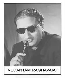 Vedantam Raghavayya (8 June 1919 –19,October 1971) was an Indian film director, dance choreographer, and actor known for his work in Telugu and Tamil cinema.[1] An accomplished Kuchipudi dancer, he was honoured with the title "Bharata Kala Prapurna" by the Andhra Pradesh government in recognition of his expertise.[2]