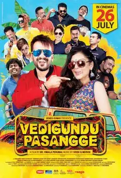 Vedigundu Pasangge is a 2018 Malaysian Tamil language crime comedy film.[1] It was the final instalment of Pasangge trilogy film series after Vilayaatu Pasange (2011), and Vetti Pasanga (2014). Vimala Perumal directed the movie with an ensemble cast including Denes Kumar, Sangeeta Krishnasamy, David Anthony, and Thangamani Velayuda. Music and background music were scored by composer duo Vivek–Mervin.