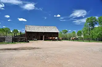 The Vee Bar Ranch Lodge was built in 1891 as the home of Lionel C.G. Sartoris, a prominent Wyoming rancher. The ranch was later owned by Luther Filmore, a Union Pacific Railroad official, and the Wright family, who operated the ranch as a dude ranch. The property comprises five historic buildings including the lodge, original corral and a stock chute.[2]