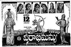 Veerabhimanyu is a 1965 Indian Telugu-language Hindu mythological film produced by Sunderlal Nahta and Doondi and directed by V. Madhusudhana Rao. It stars N. T. Rama Rao, Sobhan Babu and Kanchana, with music composed by K. V. Mahadevan. The film was recorded as a Super Hit at the box office. It was simultaneously filmed in Tamil as Veera Abhimanyu, with slightly different cast.[1] The film had its climax scene shot in Eastmancolor. The film is considered a breakthrough for Sobhan Babu.[2]