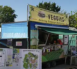 Veggies of Nottingham, also known as Veggies Catering Campaign, is a company and a campaigning group based in Nottingham, England, promoting ethical alternatives to mainstream fast food. It does this by hosting events such as the annual East Midlands Vegan Festival,[1][2] publishing books and leaflets, and maintaining an extensive website, including a Contacts Directory[3] of groups with similar aims. As a non-profit worker co-operative it also provides affordable, wholesome, minimally-packaged vegan catering at a wide range of events and protests using fair trade, organic and/or locally sourced ingredients.[4][5]