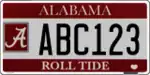 Coded by county of issuance (1 or 10) | Issued in the colors of the University of Alabama. |