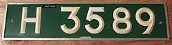 Antigua and Barbuda requires its residents to register their motor vehicles and display vehicle registration plates.[1] Current plates are North American standard 152 mm × 300 mm (6 in × 12 in).[2] The colour of the characters and the background identifies the type of vehicle it is. For example, "A" identifies private vehicles. [3]