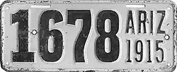1915 | Embossed black serial on white plate; "ARIZ 1915" at right | none | 1234 | 1 to approximately 7500 | |