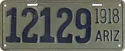 1918 | Embossed dark blue serial on olive-gray plate; "1918 ARIZ" at right | none | 12345 | 1 to approximately 24000 | |