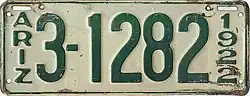 1922 | Embossed green serial on white plate with border line; vertical "ARIZ" and "1922" at left and right respectively | none | 1-12345 10-1234 |