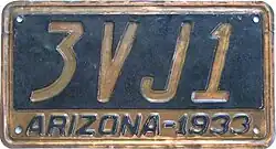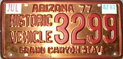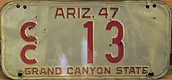- ^ a b c Tanner, Eric N. "Arizona Passenger License Plates". allaboutlicenseplates.com. Retrieved November 11, 2020.