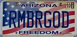 - ^ Faherty, John (April 30, 2008). "Ariz. plates get extra character". The Arizona Republic.