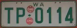 Under Part 10 of the Australian Light Vehicle Standards Rules 2015,[16] vehicles powered by fuels other than petrol or diesel (collectively alternative fuel systems) must always display a specific plate that is affixed to both the front and rear number plates.[17] These labels exist to assist emergency services personnel in responding to potential hazards involving such vehicles. Generally, such labels are applied permanently to the registration plate by way of pop rivets or other mechanical fixtures.