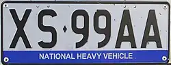 | South Australia | Black/white | SB·nn·aa | SA HEAVY VEHICLE | SB·00·SZ | Slogan screen printed black/white. |