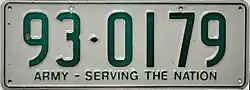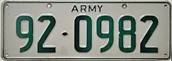 However, new plates issued to the Army are now in this format: nn-nnnn, where the first two digits represent the year the vehicle was registered, e.g. 05-1832.