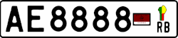 License plates of Benin are made in European shape and size. The current scheme of regular license plates for private vehicles of Benin was introduced in the early 1990s. It has the format A1234, later AB1234 where AB - Series 1234 - number. Regular plates have a white background with black signs. At the right side of the plate are image maps of the country in the colors of the national flag under which the code has RB. Between the main group symbols and code placed rectangular sticker. There is a two-line version of the format license plate AB / 1234. License plate for motorcycles format is 1A / 2345, where 1A - Series, 2345 - number. Regional coding is missing.