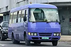 The numbers for taxis and buses are the same as those for private vehicles, but the vehicle registration plates have a green background instead of black background instead. The letters and numbers on the plate is white in colour as with private vehicles.[6]
