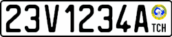 The current scheme of regular license plates of Chad was introduced in 2001. It is based on the French FNI system and has a format of 12A3456B, where 12 is the region code, A is a vehicle type indicator, 3456 is a number, and B is a series. Regular plates have a white background with black markings. On the right is the emblem of the Central African Economic and Monetary Community (CEMAS) and the TSN code.