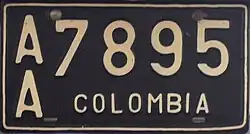 - ^ "Colombia plates". Matriculasdelmundo (in Spanish). Retrieved 2024-06-13.