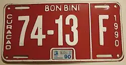 Current plates are North American standard 6 × 12 inches (152 × 300 mm).[1]