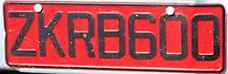 Visitor plates have red characters with the prefix ZZ and up to four numerals. Until 2018 they had blue characters.