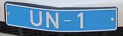 UNFICYP plates have a blue background and display the prefixes UN or UNF followed by three numerals.[2]